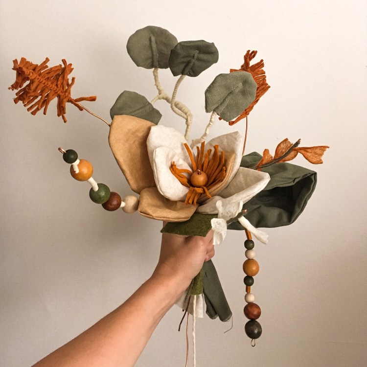 Dit was één van de eerste stappen naar Bloemen van Stof, namelijk samen met mijn zus haar bruidsboeket maken!